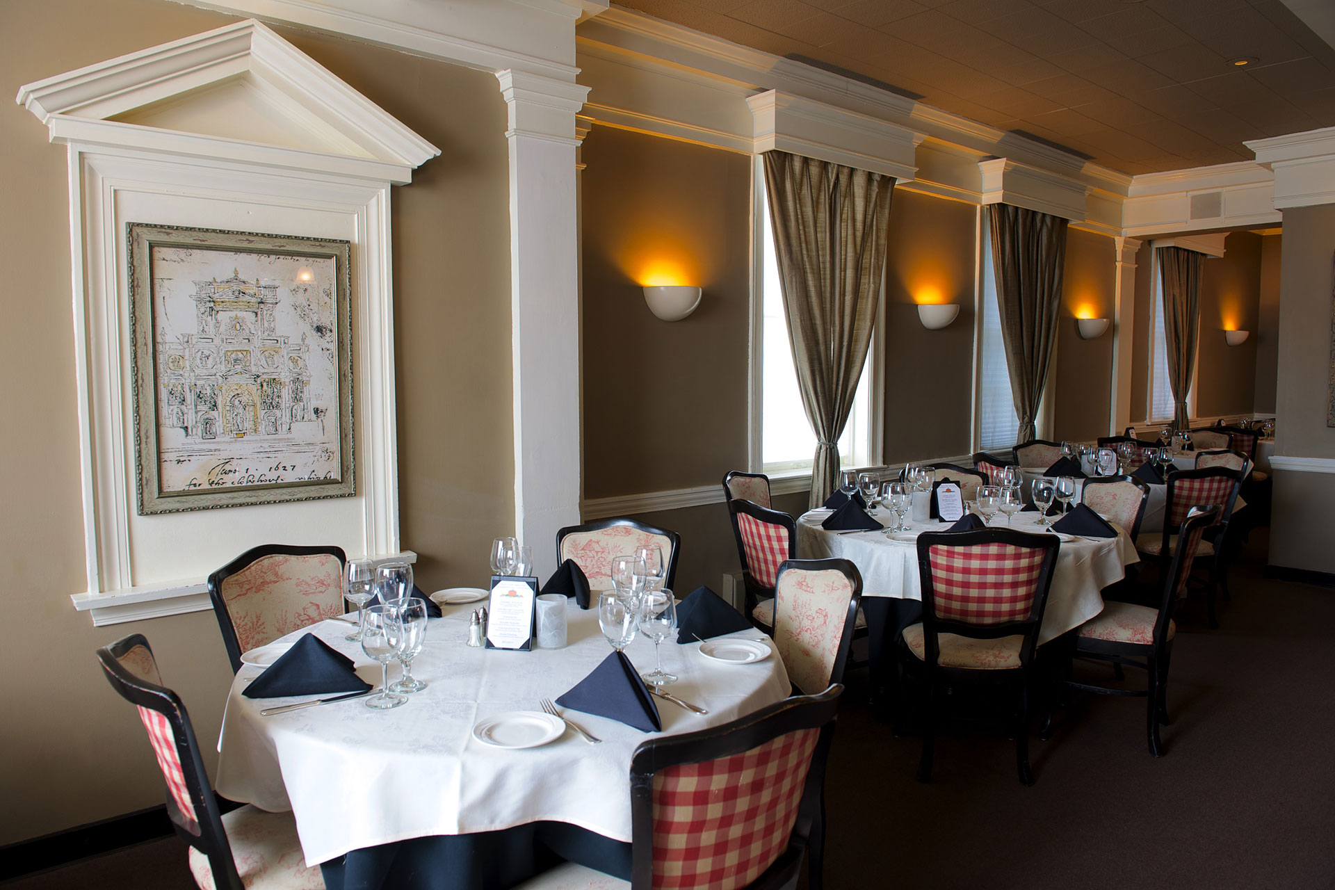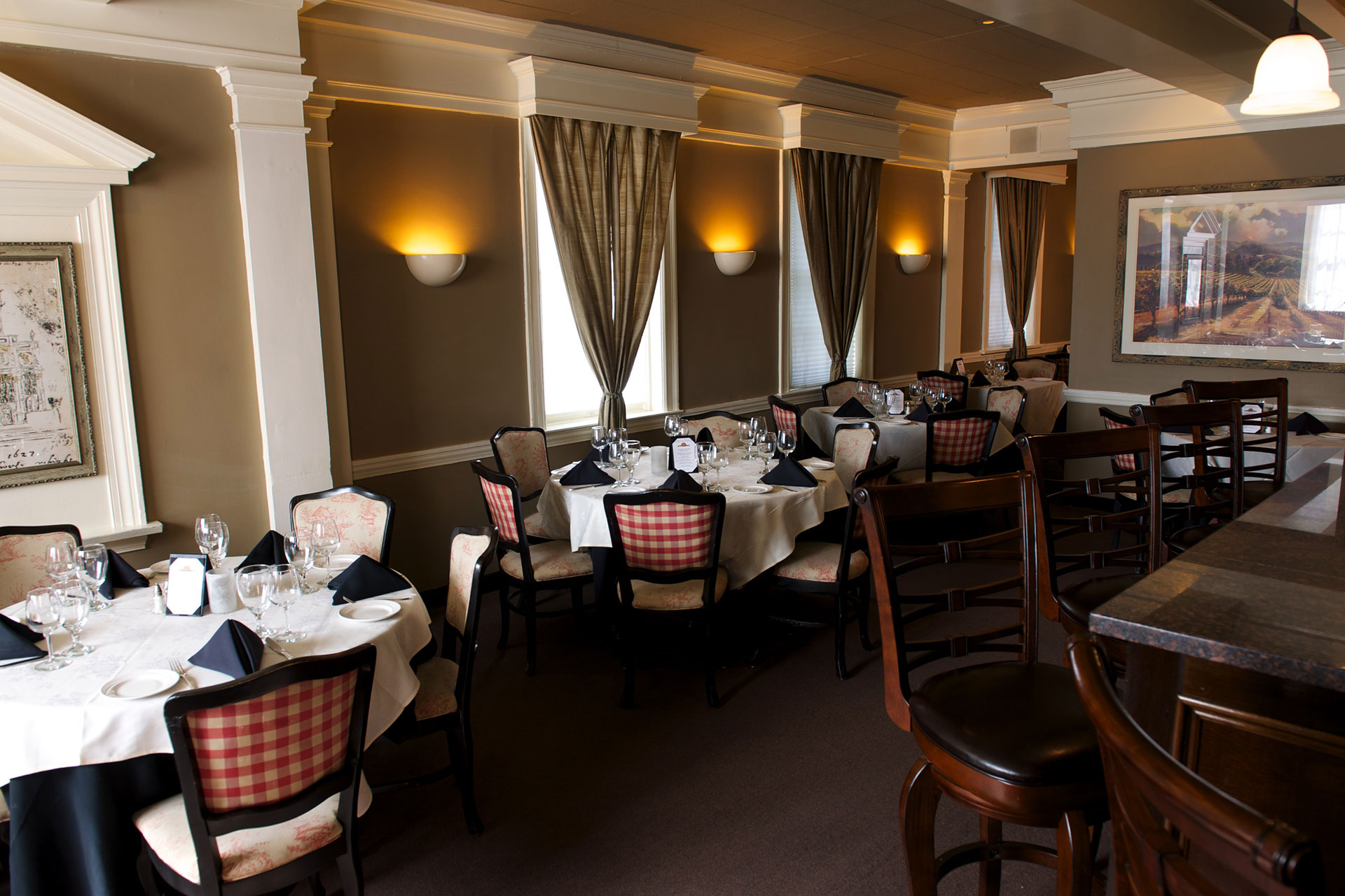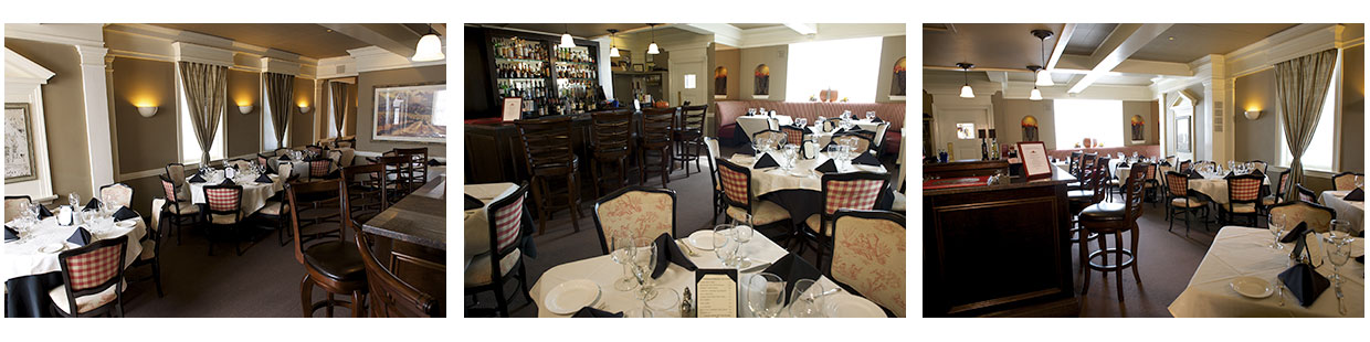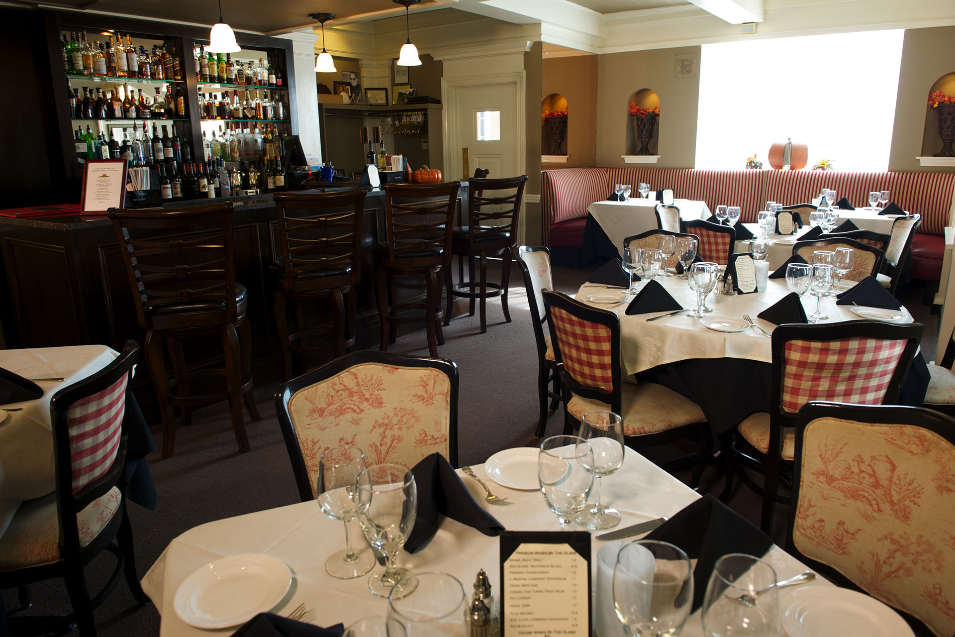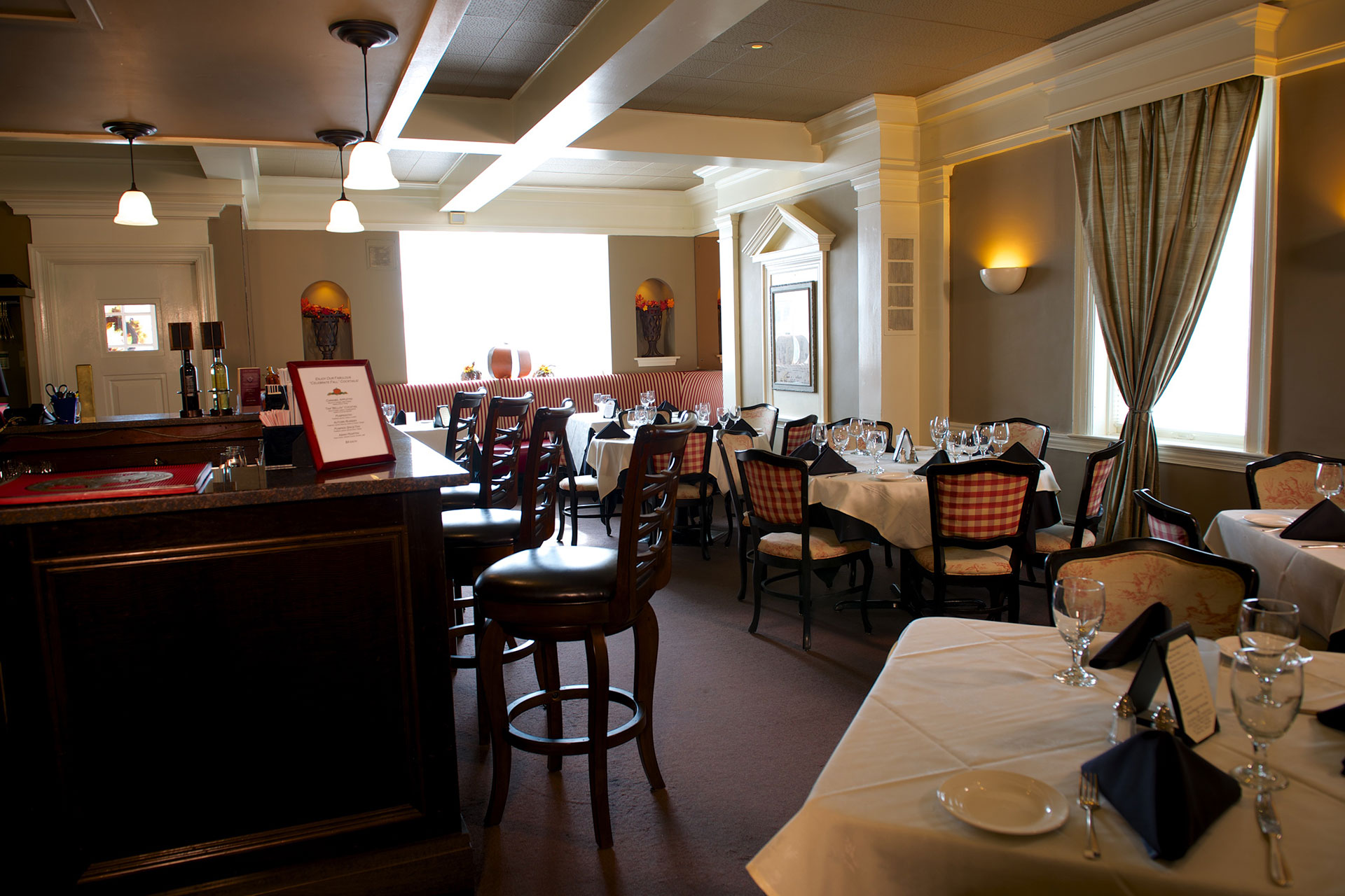 The Main Dining Room is designed in a traditional style for a relaxed dining experience. It's a warm and inviting environment where you can have a good time with friends and family. A fully stocked, top shelf bar with seating for six is available to enjoy before or after you dine. The room comfortably seats 50 people, with a 16 person semi-private area for small groups.
